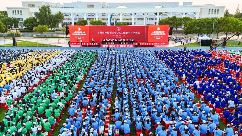 On the afternoon of September 16th, SUIBE held the Entrance Ceremony for the Class of 2025 Freshmen at the Stadium of Songjiang Campus. Qi Ming, Chairman of the University Council of SUIBE, SUIBE President Wang Rongming, Zhang Yiguo, Vice Chairman of the University Council and Secretary of the Discipline Inspection Commission of SUIBE, Shen Yi, Vice Chairman of the University Council and Vice President of SUIBE, SUIBE Vice President Xu Yonglin and other university leaders attended the ceremony. Teachers, students and parents and relatives watched the ceremony online. Wang Rongming delivered an opening speech titled “Forging a Growth Path on the Scroll of the Times”, and on behalf of the university, extended a warm welcome to the Class of 2025 freshmen who are embarking on a new journey of life.