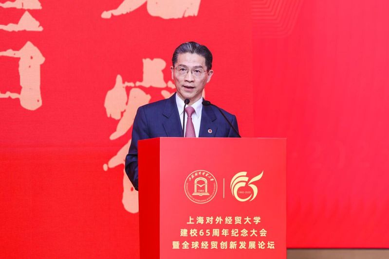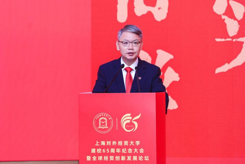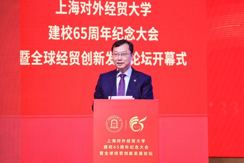 On the morning of October 18, the Commemoration Conference for the 65th Anniversary of the Founding of Shanghai University of International Business and Economics and the Global Forum on Innovation and Development of Economy and Trade was grandly held. Leaders and guests from government departments, fellow universities and partner units, as well as former SUIBE leaders, alumni at home and abroad, and representatives of faculty, staff and students attended the event. The university received congratulatory letters from more than 40 fellow universities and partner units.