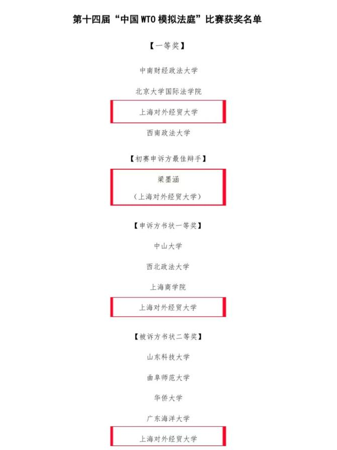 Recently, the 14th China WTO Moot Court Competition was held in Southwest University of Political Science and Law. After written submission evaluations, online preliminaries, and multiple offline competitions, SUIBE team stood out among 66 participating teams from across China, winning the national first prizein the team category, the first prize of the complainant’s pleading and the second place of the defendant’s pleading. Besides,