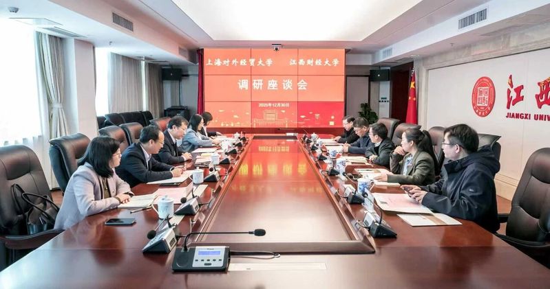Recently, SUIBE President WangRongming led a delegation to Jiangxi Province to learn from the advanced experiences of relevant institutions, deepen practical educational cooperation between Shanghai and Jiangxi, and help expand high-level opening-up. During the visit, WangRongming paid courtesy calls to Yin Hong, Secretary of the CPC Jiangxi Provincial Committee, and Zheng Lei, Director of the Jiangxi Provincial Department of Education. He also conducted research visits to Jiangxi University of Finance and Economics (JUFE) and Nanchang University (NCU).