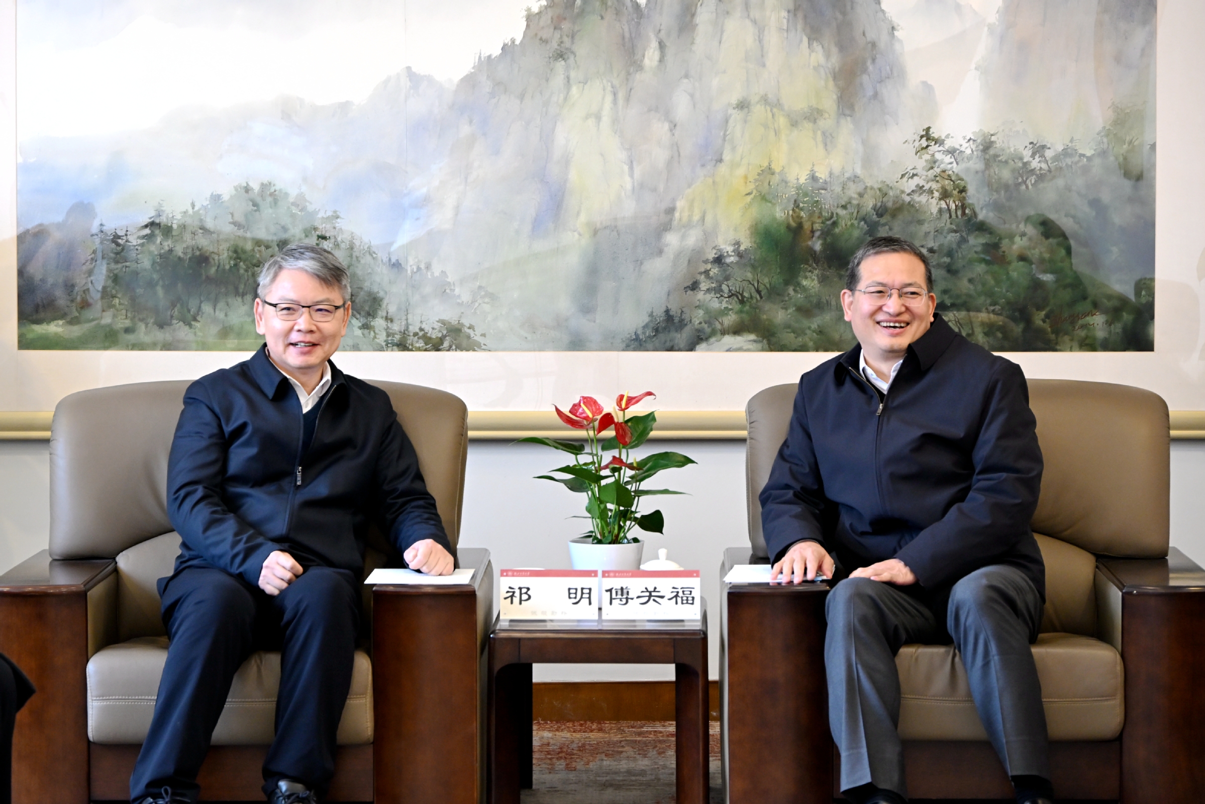 On January 27th, Chairman of the University Council of SUIBE Qi Ming and Vice President Jiang Xiuzhen led a delegation to conduct special research at Zhejiang Gongshang University. Chairman of the University Council of Zhejiang Gongshang University Fu Guanfu, President Wang Yonggui, Deputy Chairman of the University Council of Zhejiang Gongshang University Yuan Jinxiang, and heads of relevant administrative departments joined the meeting.